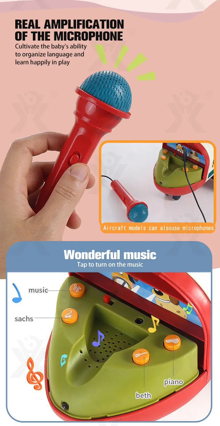 - Built-in Microphone for Language Development: Our sound-activated storage aircraft toy includes a working microphone for amplification. Encourages singing and speaking to build language skills and confidence in a fun way.
