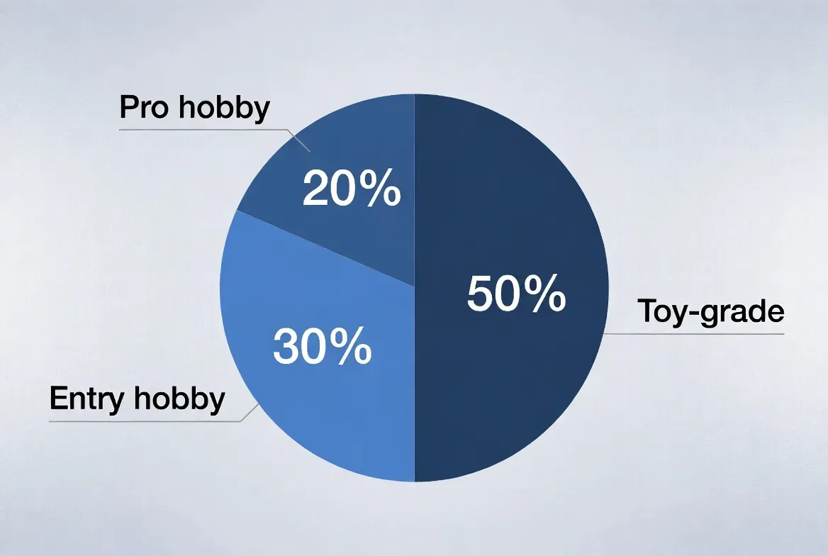 - Entry hobby-grade: moderate BOM, better margins, higher conversion with demo content.