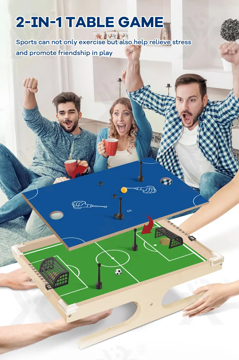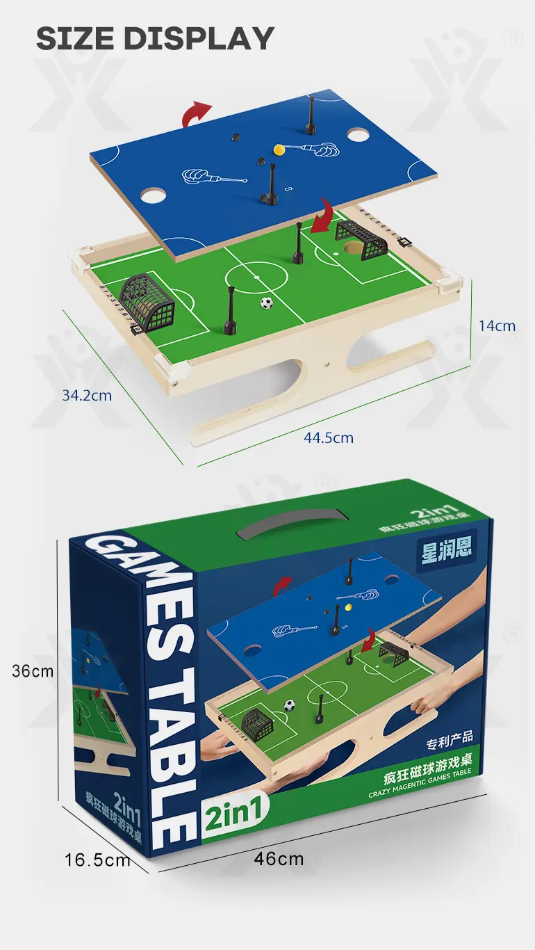 Wholesale magnetic tabletop football game supply. 2-in-1 double-sided table game with real duel simulation, interactive football launch, round corner safety & family bonding; perfect for stress relief & friendship building!