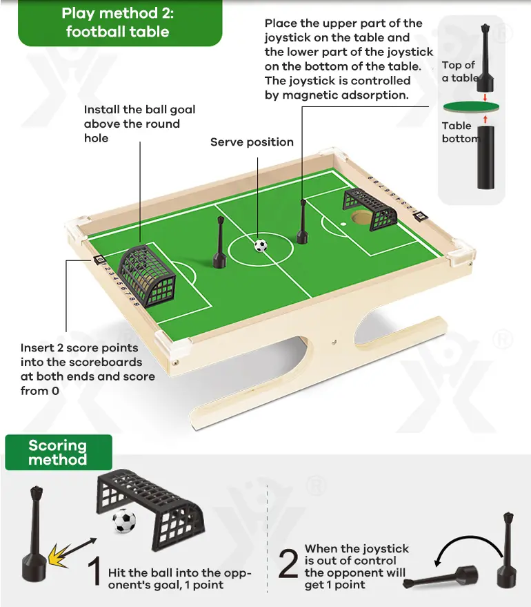 Features double-sided game boards, one side for football launch & the other for duel game, rich game content to meet different playing needs, bringing double fun for players. -