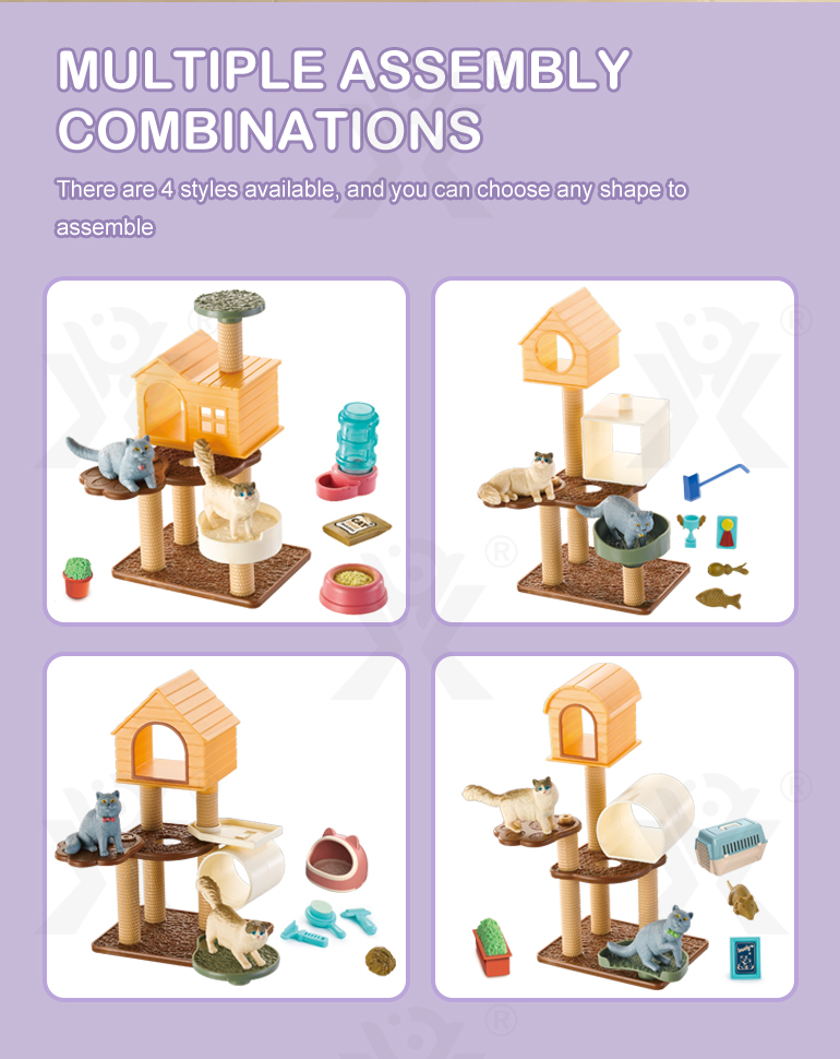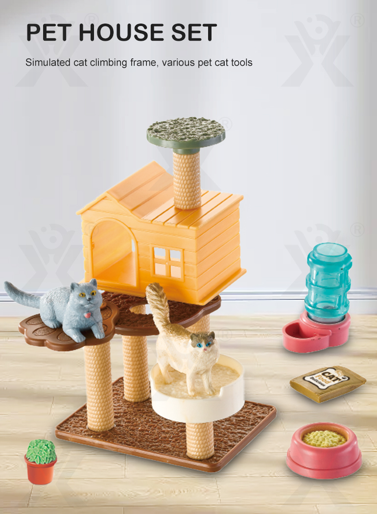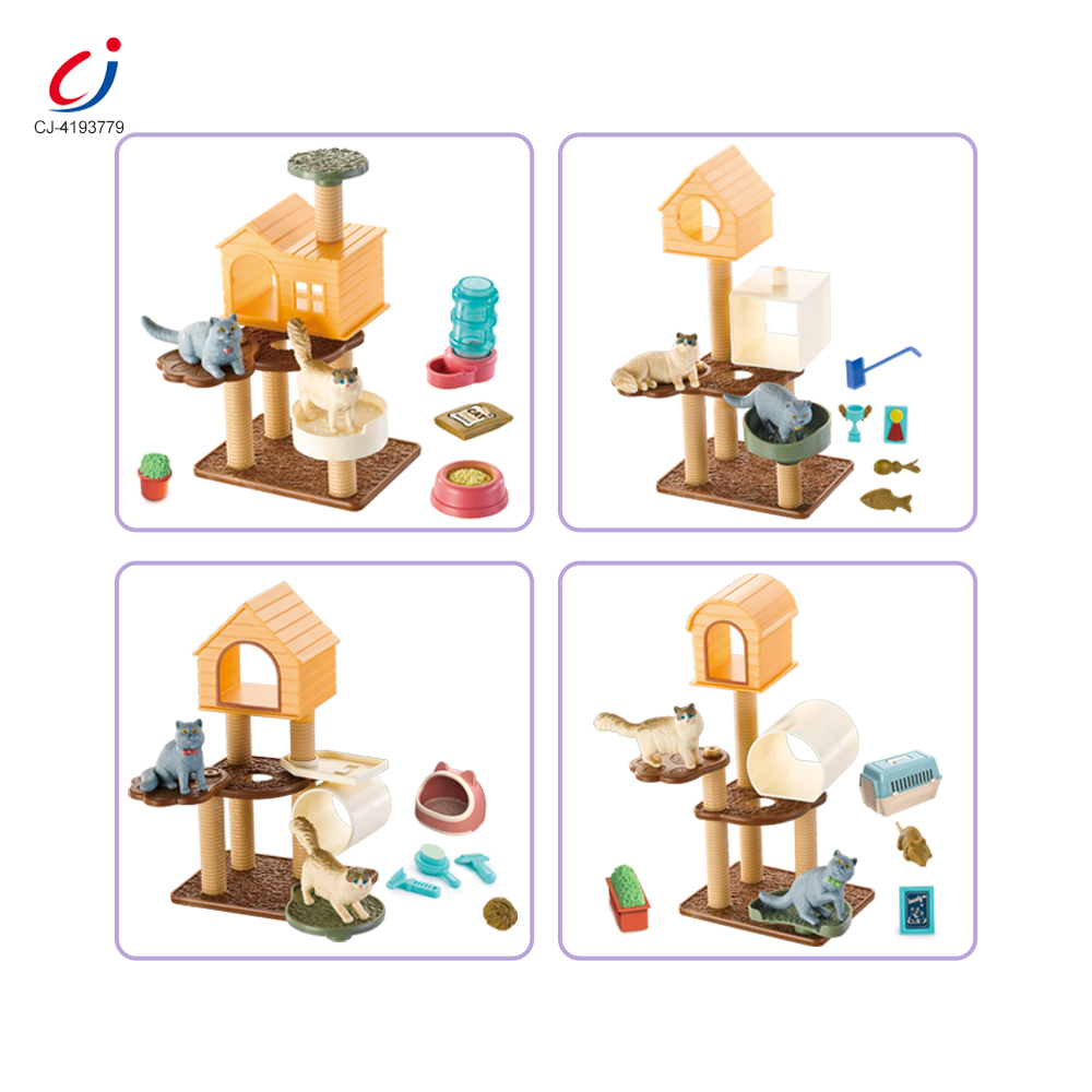 Wholesale pet house toy – 4-in-1 simulated cat climbing frame with eco-ABS for creative pet care role-play! Bulk supply supported. Get a factory price now!