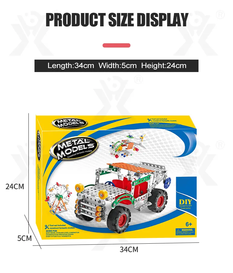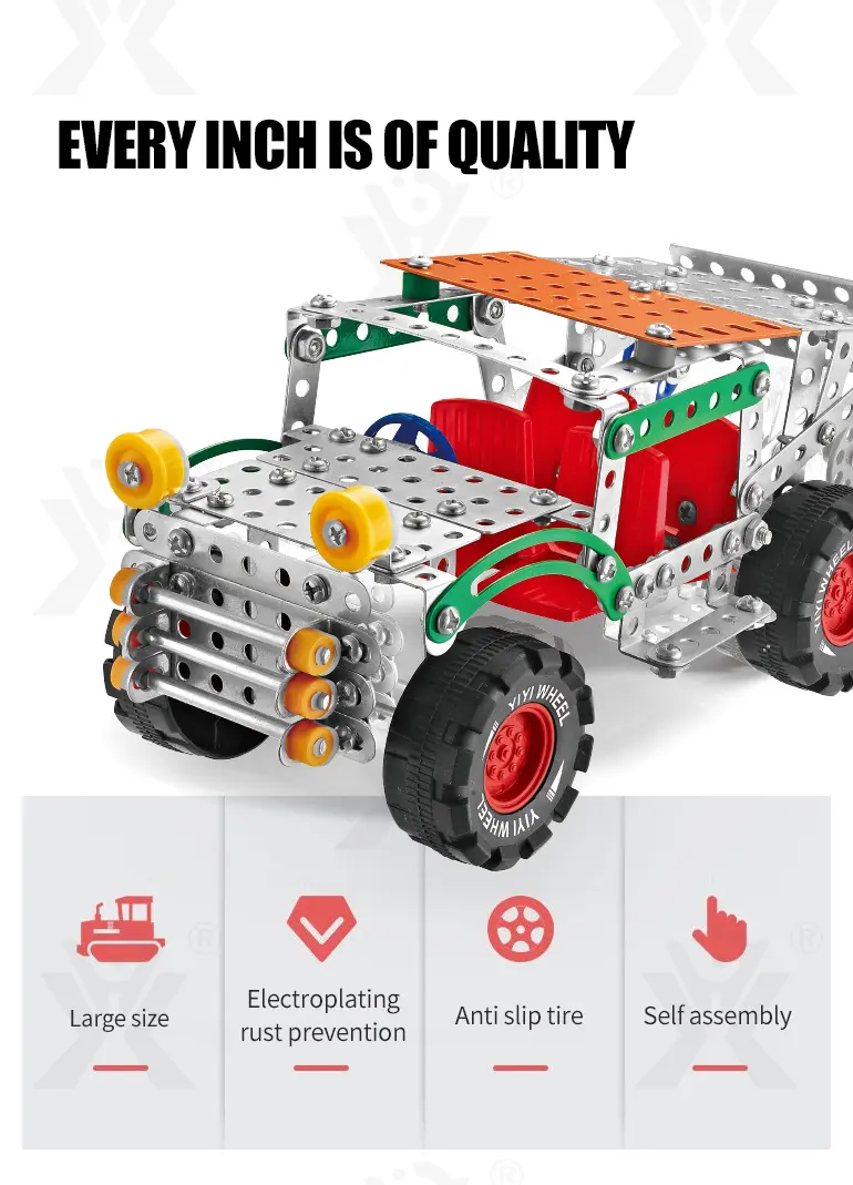 This is not a ready-to-play toy. Children assemble the entire racing car from scratch using the included screws, metal sheets, and tires. The process develops fine motor skills, patience, problem-solving abilities, and understanding of mechanical assembly. -