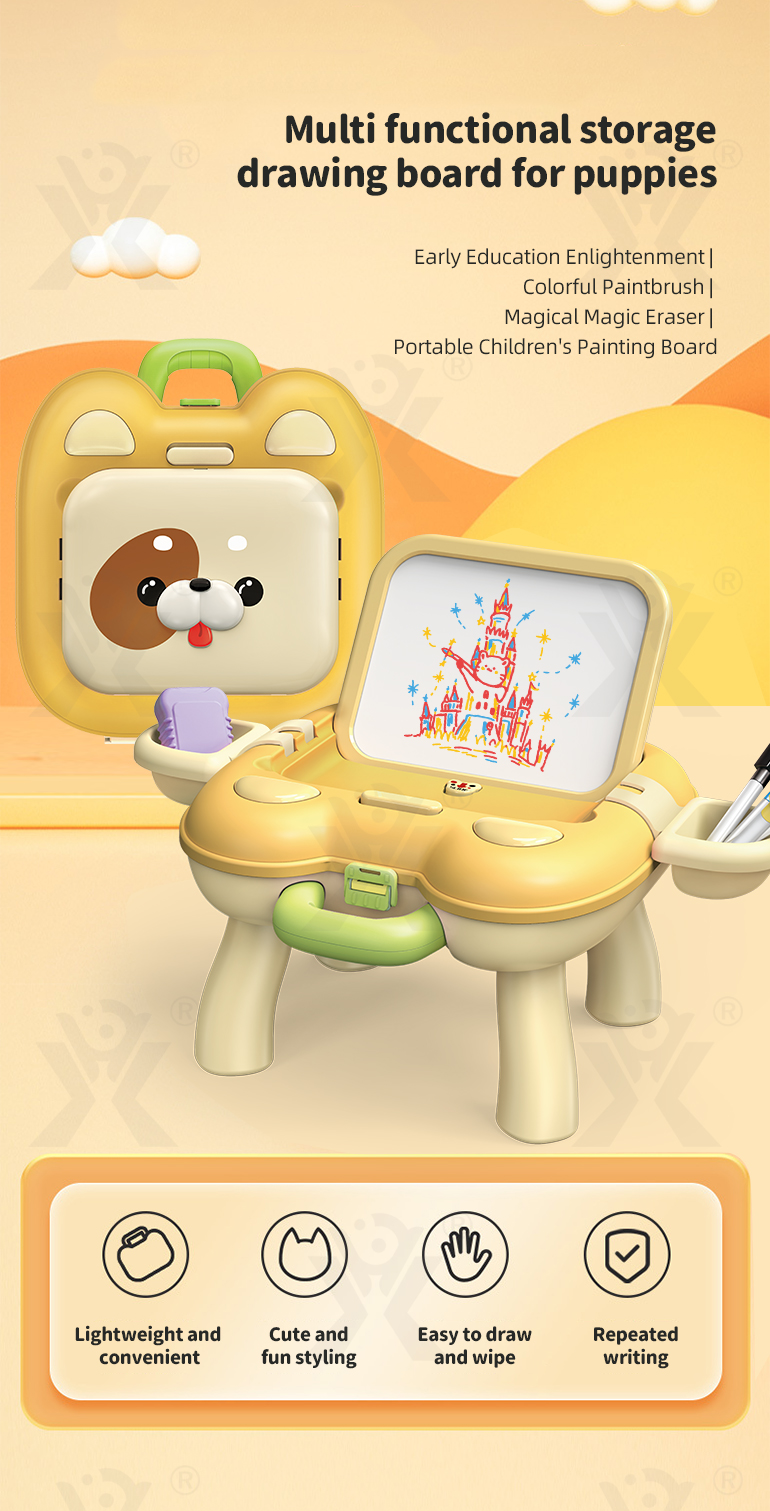 Wholesale 3-mode puppy drawing board with magic eraser & storage for creative early learning! Our drawing board toy can be transferred to an easel, a drawing board, and a chair for multiple uses. Bulk toy supply available. Contact us now!