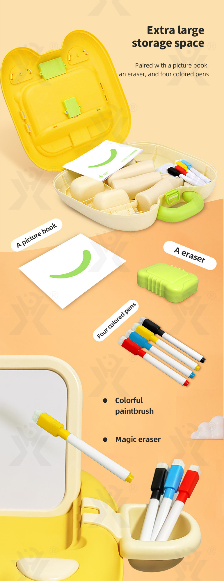 - Extra-Large Storage Space: Stores picture books, erasers, and 4 colored pens for organized play is supported.