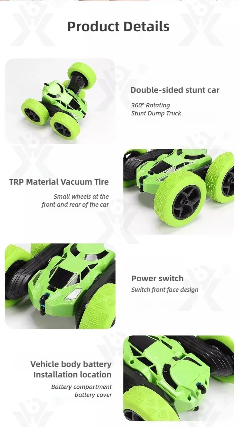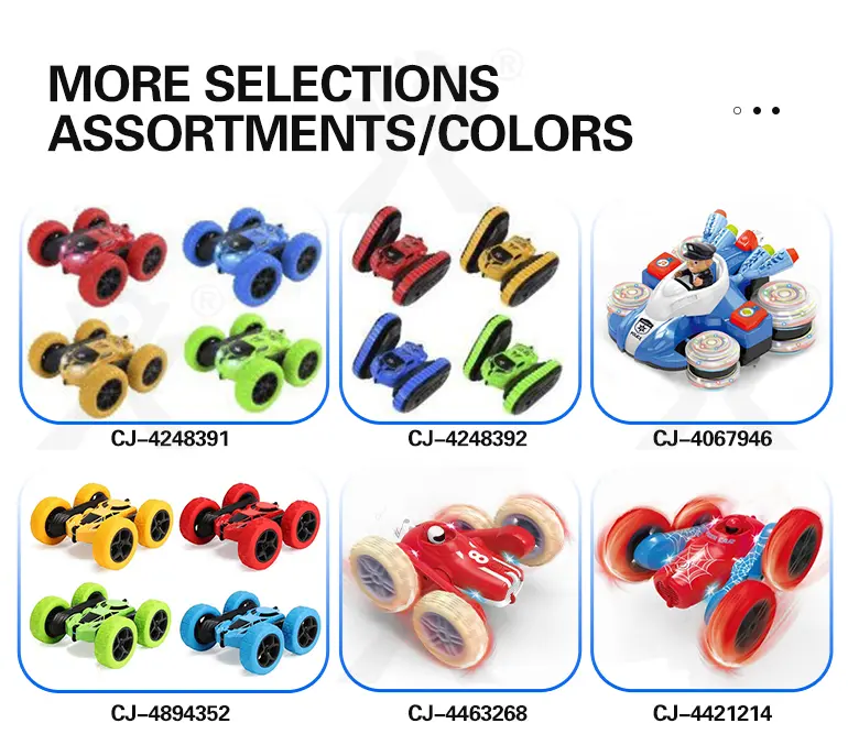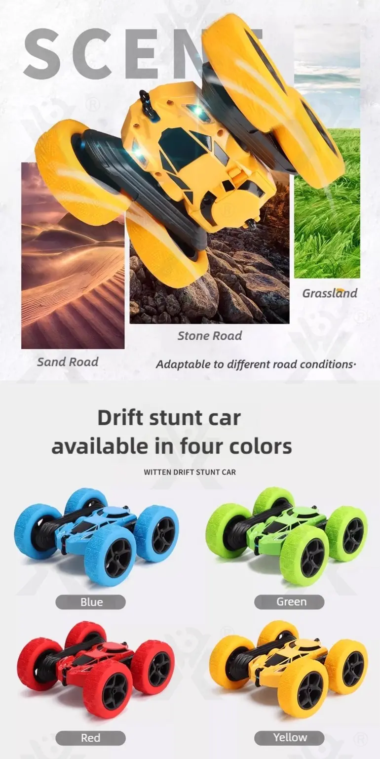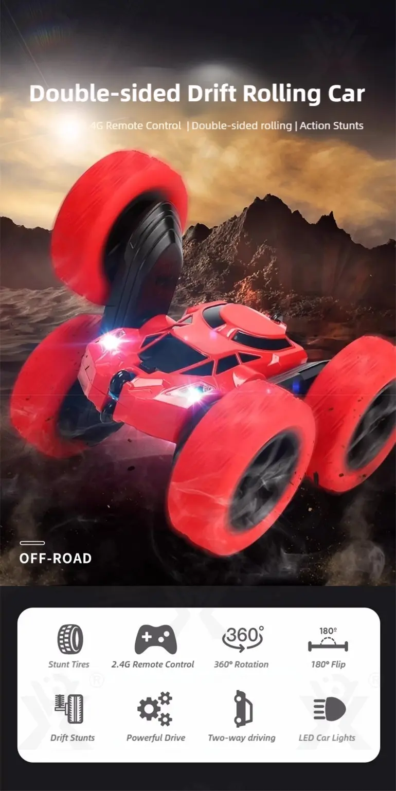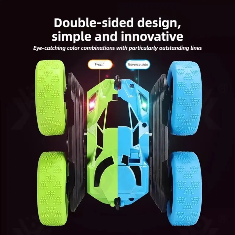 Wholesale remote control double-sided stunt car. Our wholesale 2.4G double-sided stunt car features 360° rotation & 45° climbing! LED lights, all-terrain tires, bringing kids ultimate drifting & rolling performance. Bulk purchase available. Contact us for the factory price now!