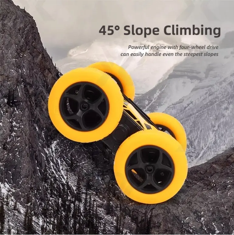 - 45° Slope Climbing Capability: The 4WD motor of our wholesale RC double-sided stunt car can easily handle 45° steep slopes and various challenging terrains.