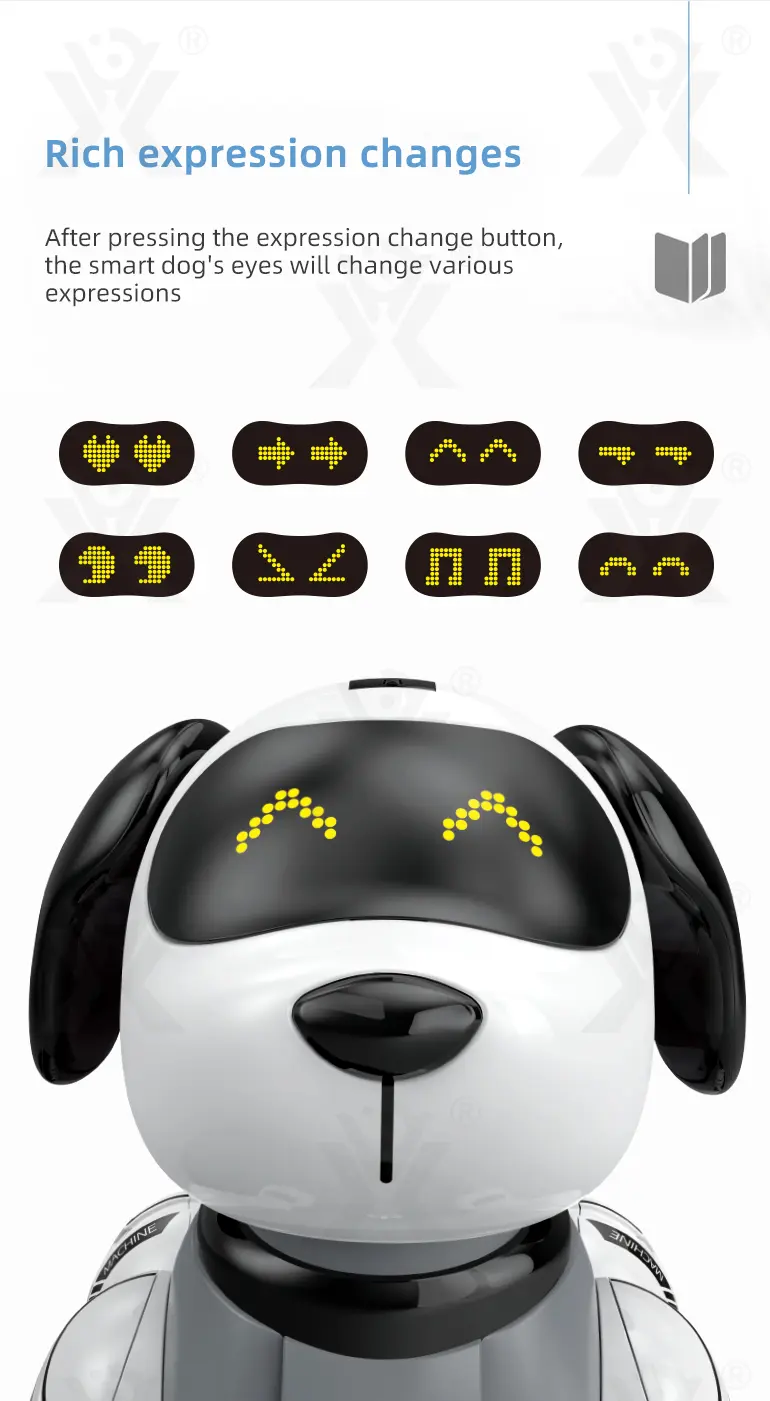 Mimics real dog behaviors like handshake, sitting, walking, and changing expressions for lifelike companionship.