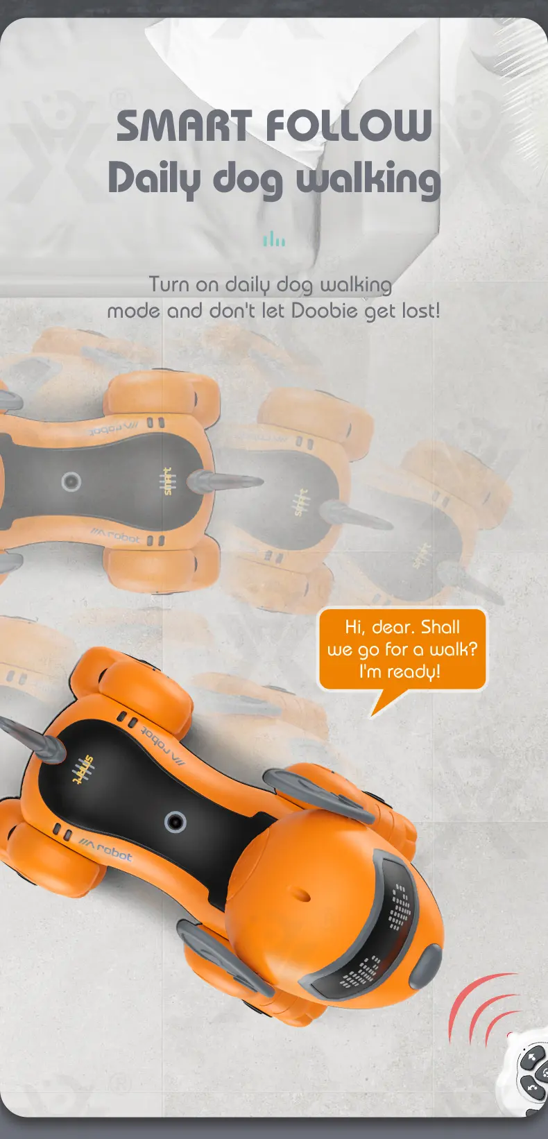 - Smart Follow & Daily Walking Mode: It follows you around automatically, simulating a real dog-walking experience with smooth movement and playful engagement.