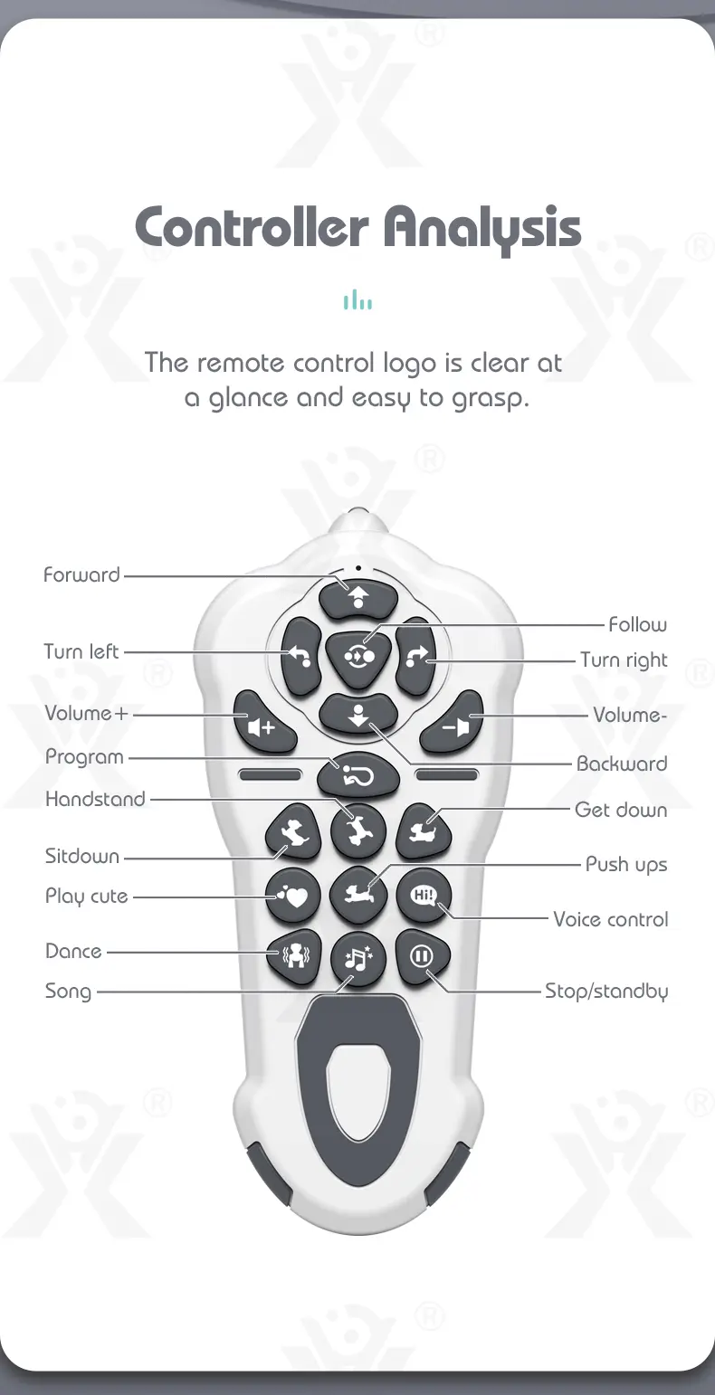 - Intelligent Voice Control & Commands: This voice-controlled robot dog can respond to voice instructions like “do push-ups” or “handstand” and perform corresponding actions for interactive training fun.